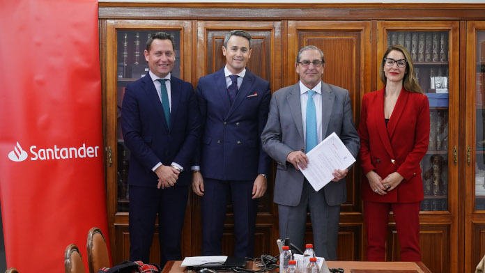 Así lo han formalizado el decano de la Corporación, Leandro Cabrera, y el tesorero, José Miguel Zurita, junto al director de zona de Banco Santander en Granada, Francisco Quesada, y la responsable de Instituciones en Granada, María López Vernetta. “El Colegio no puede dejar pasar la oportunidad de colaborar con una entidad de la talla de Banco Santander, más cuando ponen a disposición de los colegiados un interesante catálogo financiero que nos puede beneficiar a los abogados y potencian la formación continua del colectivo”, ha señalado Cabrera durante la firma del documento.
