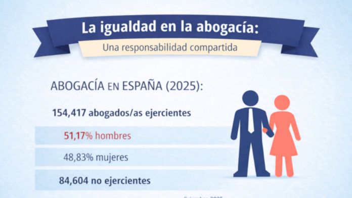 Los datos del Censo de la Abogacía Española reflejan una profesión cercana al equilibrio. A diciembre de 2025, los 83 Colegios de la Abogacía contaban con 154.417 abogados ejercientes y 84.604 no ejercientes; el 51,17 % son hombres y el 48,3 % mujeres.
