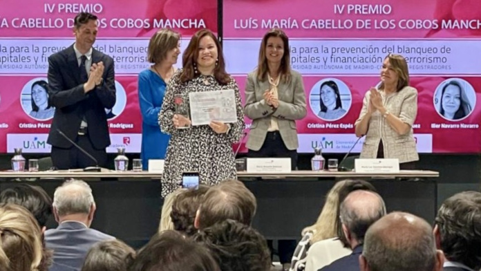 La periodista Ilier Navarro, colaboradora del diariolaley, recibió ayer el Premio Luis María Pérez de los Cobos Mancha, creado por el Colegio de Registradores de España junto a la Facultad de Ciencias Económicas y Empresariales de la Universidad autónoma de Madrid (UAM). El reconocimiento al mejor artículo periodístico recayó en el reportaje titulado “El blanqueo evoluciona: de mulas a cripto activos”, publicado en el suplemento legal del periódico Cinco Días. El jurado reconoció la conexión con un tema de actualidad, el rigor y el estilo con que la periodista elaboró su artículo.