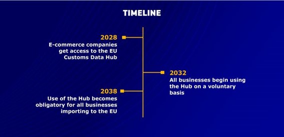 Timeline about the next steps of the EU Customs Reform from 2025 to 2035 [1]