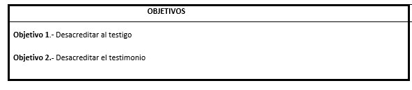 La ficha que sigue recoge, a modo de ejemplo, dos objetivos de un contrainterrogatorio.
